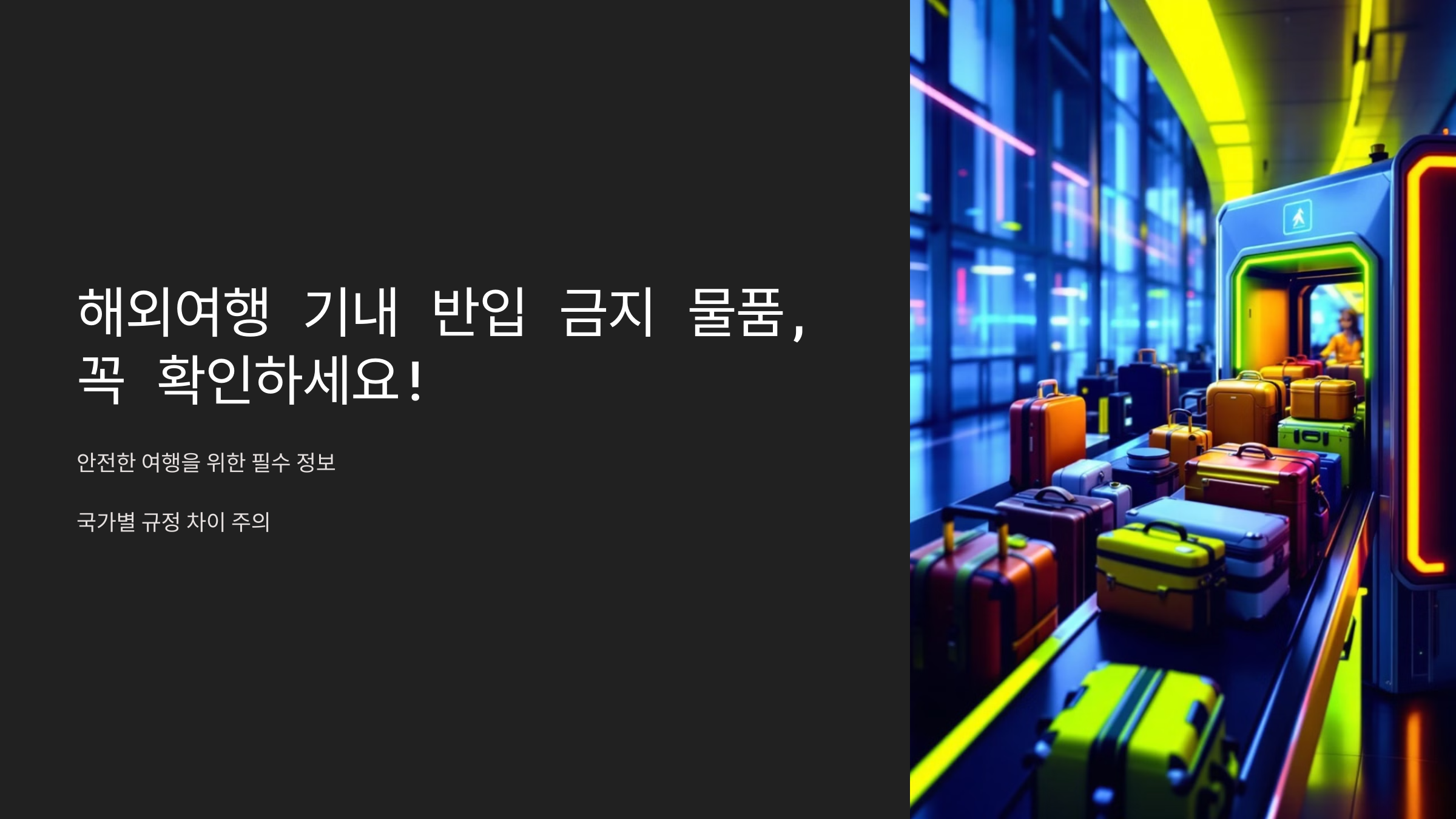 특히 **액체류, 배터리, 음식물, 위험 물품** 등은 반입 규정이 엄격하므로, **반입 가능 여부를 사전에 확인**해야 해요. 오늘은 기내 반입 금지 물품과 주의해야 할 사항을 자세히 알려드릴게요! ✈️