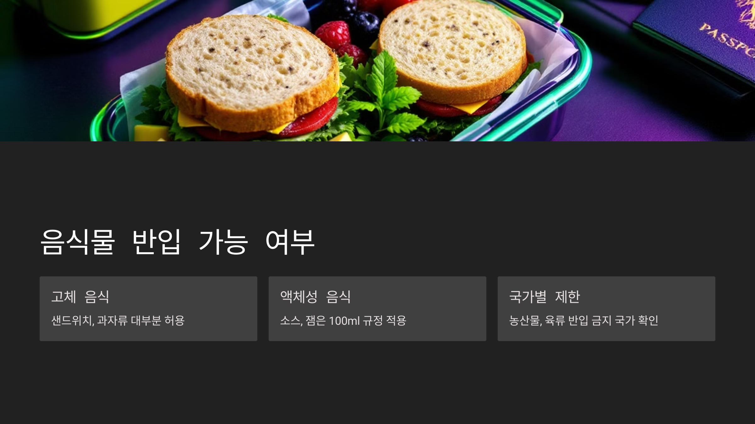 | 음식 종류 | 기내 반입 여부 | 비고 |