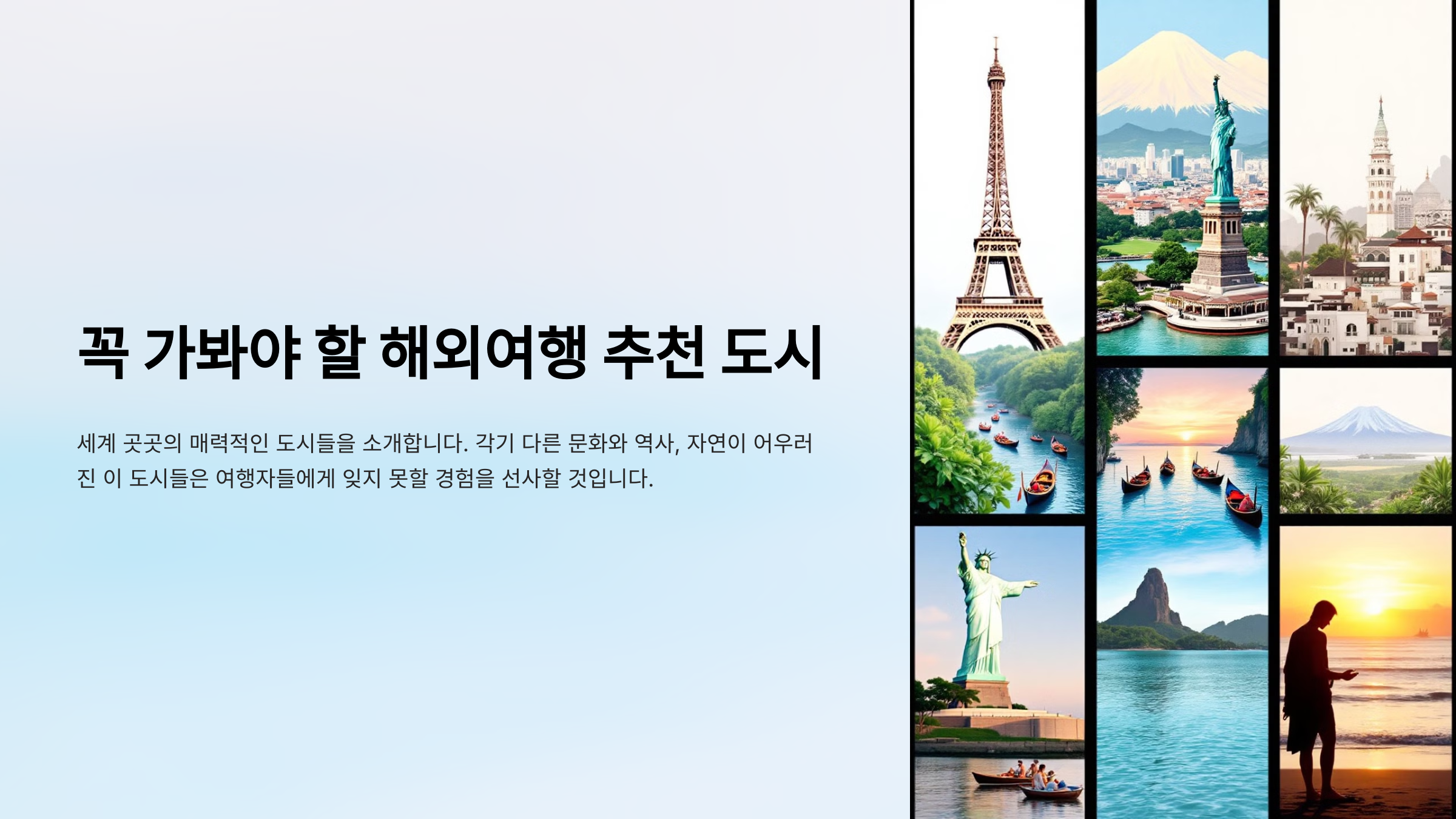 해외여행을 계획하고 있다면, 어디로 가야 할지 고민될 거예요. 전 세계에는 가볼 만한 도시가 정말 많지만, 여행자의 취향과 목적에 따라 최고의 목적지가 달라질 수 있죠. 🛫