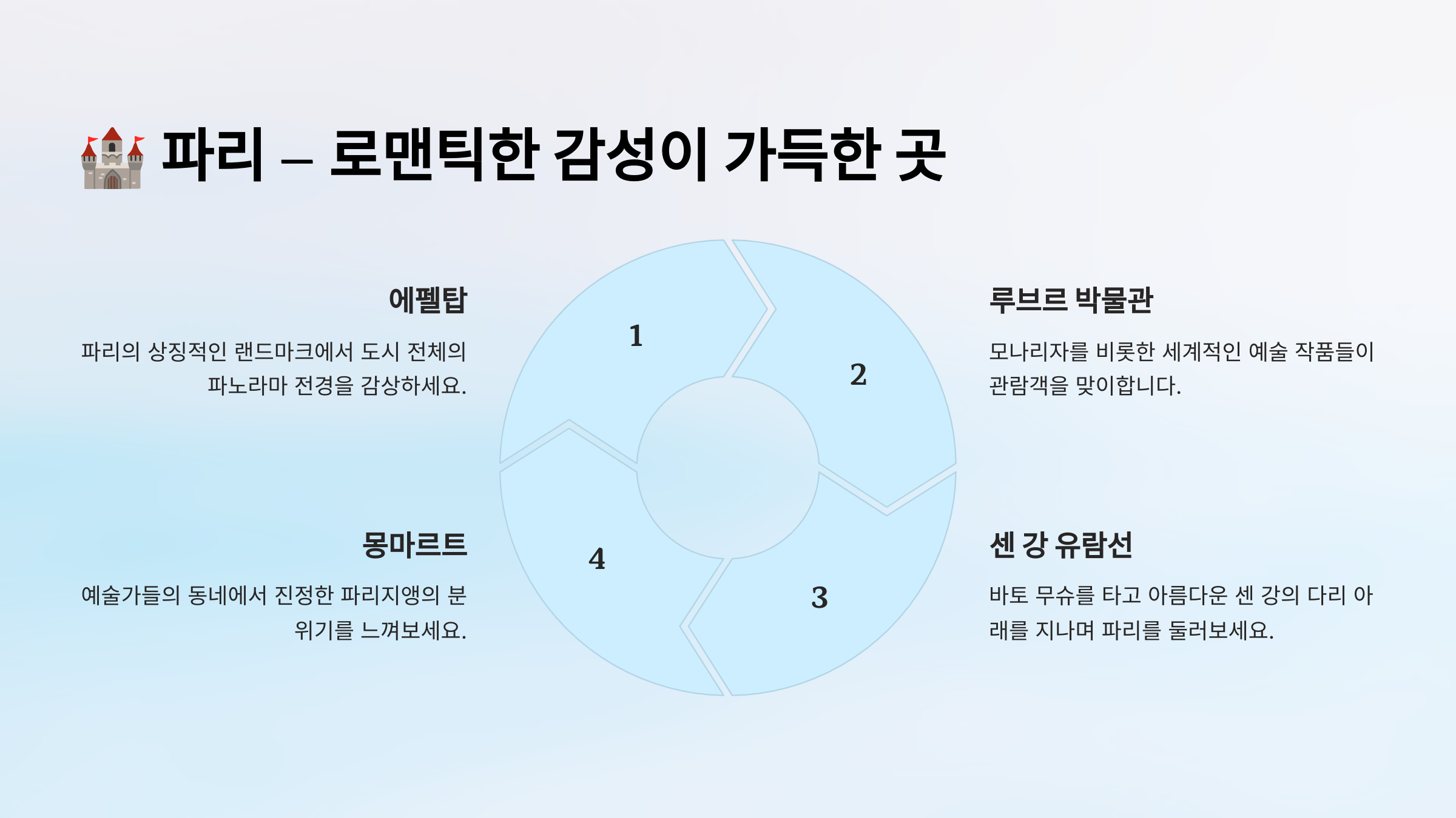 이제 세계에서 가장 로맨틱한 도시, 파리로 떠나볼까요? 🏰✨