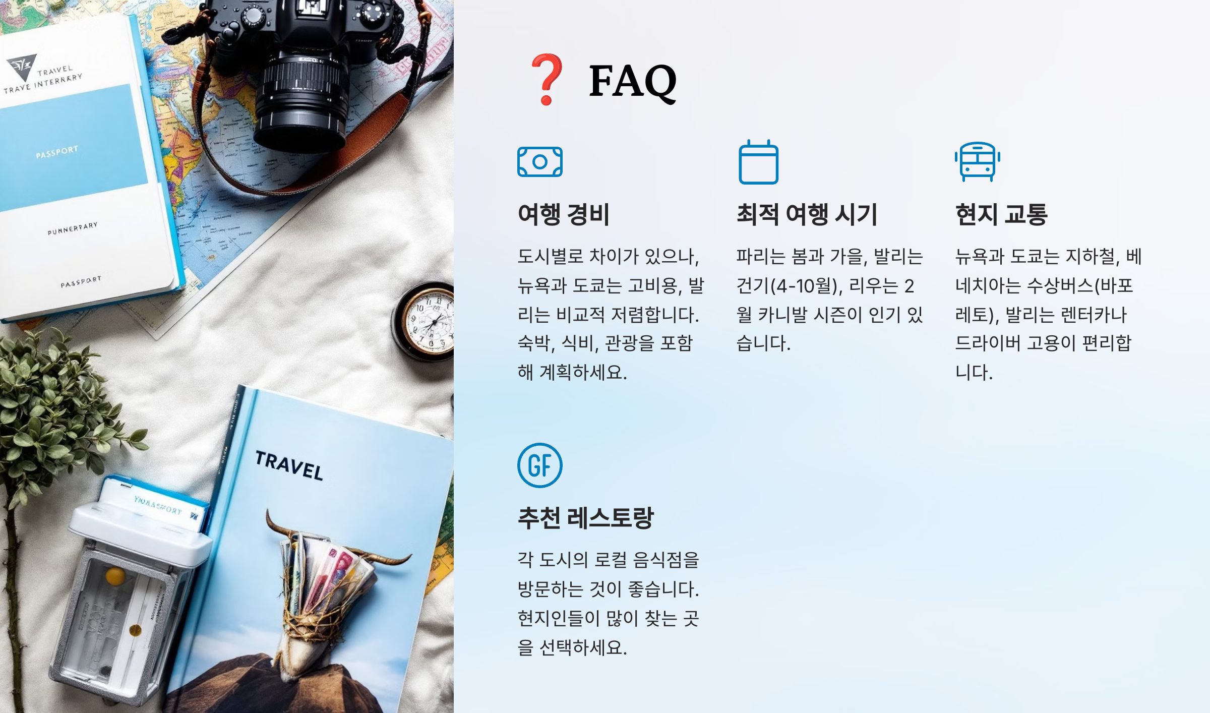 이제 여러분이 궁금해할 여행 관련 질문을 모아봤어요! 📌
