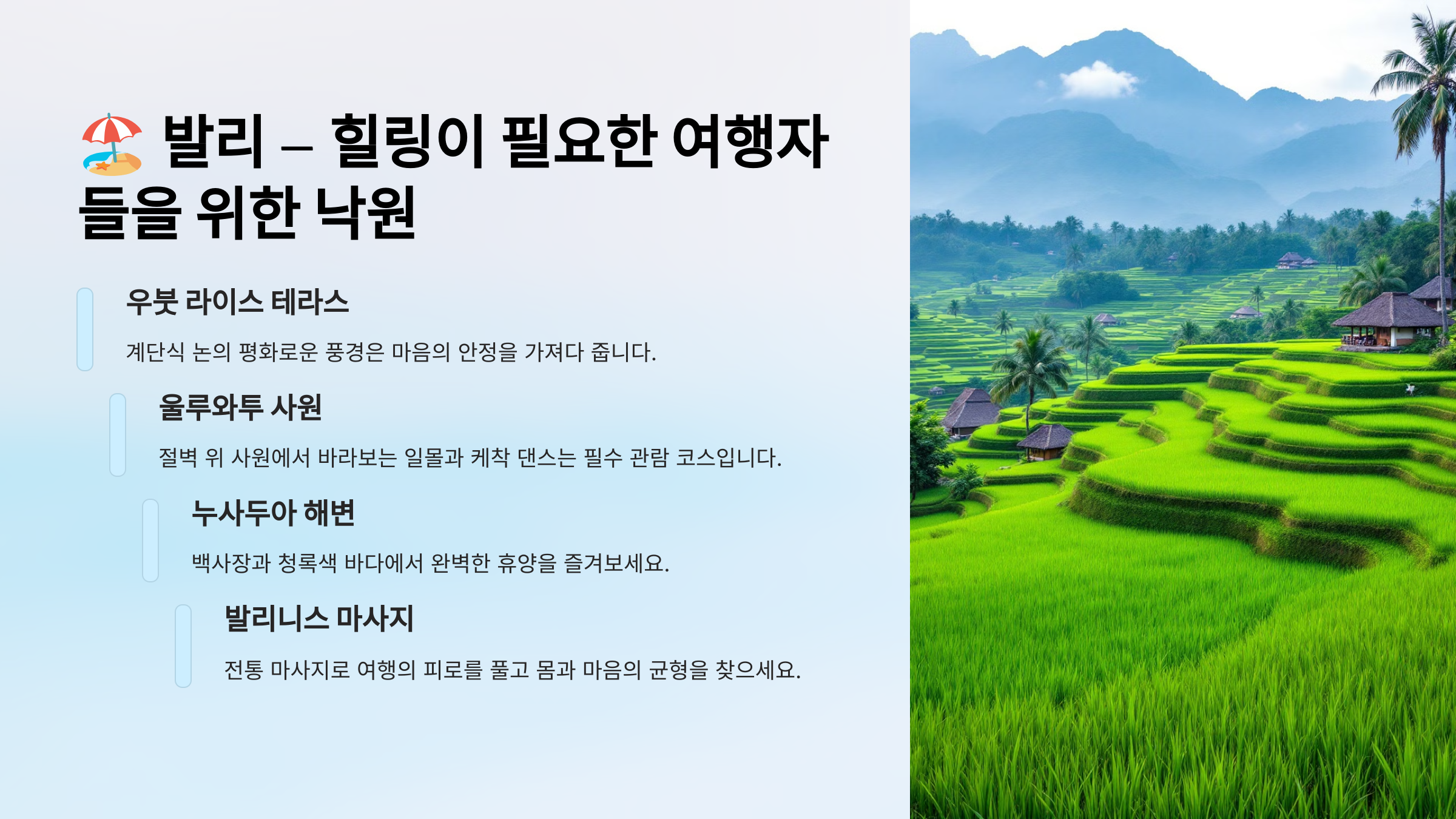 이제 힐링이 필요한 여행자를 위한 천국, 발리로 떠나볼까요? 🏖️🌴