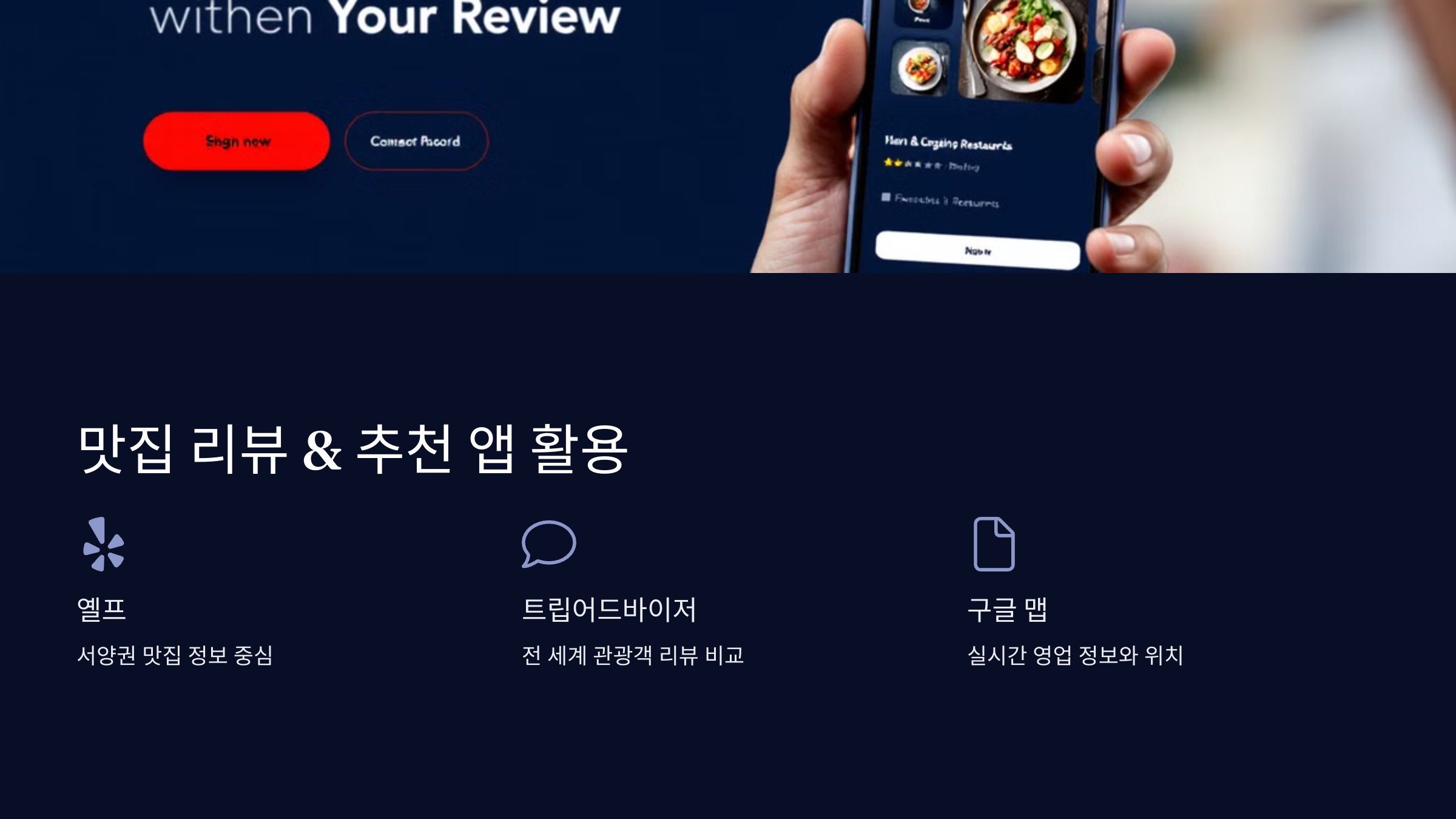 | 🍕 옐프 (Yelp) | 미국, 유럽 | 현지인 리뷰 위주로 제공 |