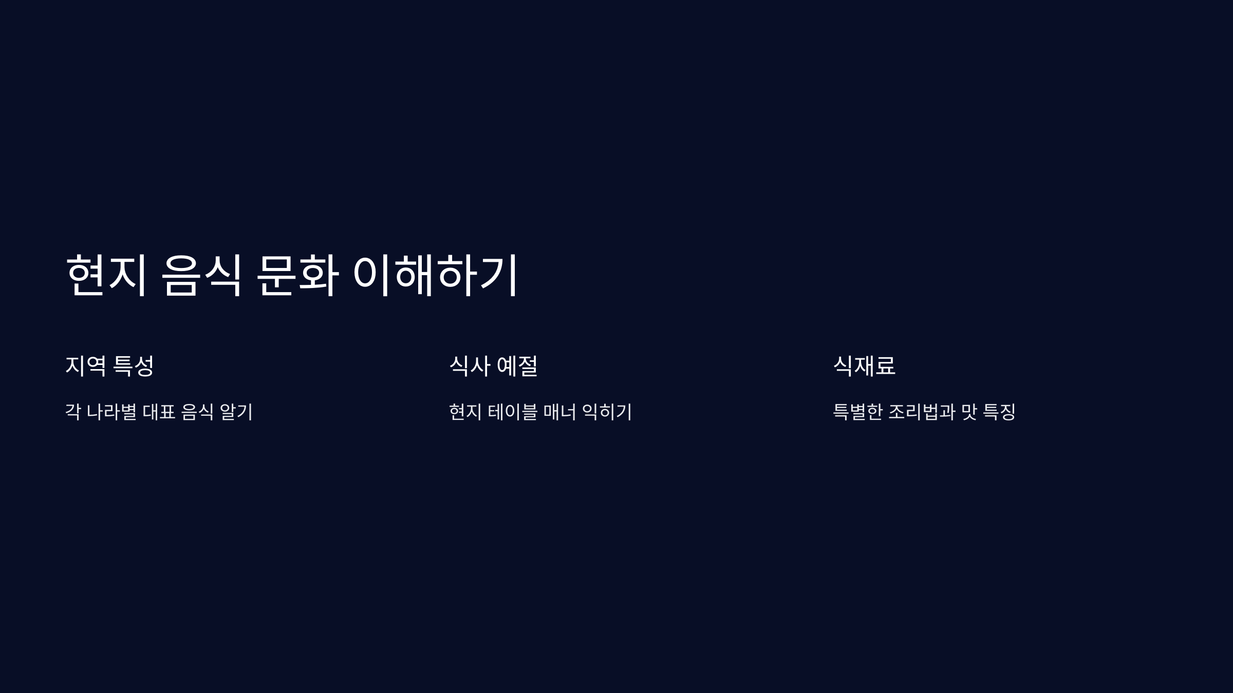 맛집을 찾기 전에, **그 나라의 대표 음식을 먼저 알아두면 실패할 확률이 줄어들어요!** 현지에서 꼭 먹어야 할 음식이 무엇인지 알고 가면 훨씬 더 맛있고 즐겁게 식사를 할 수 있답니다. 🍛✨