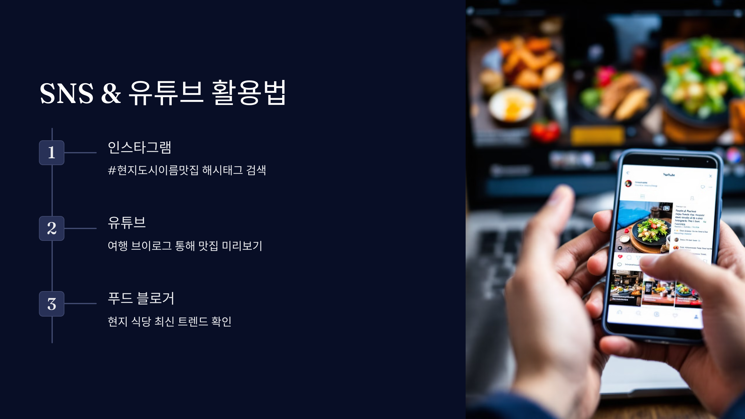 📢 **SNS와 유튜브는 현지인과 여행자들이 실시간으로 공유하는 정보를 얻을 수 있어요!**