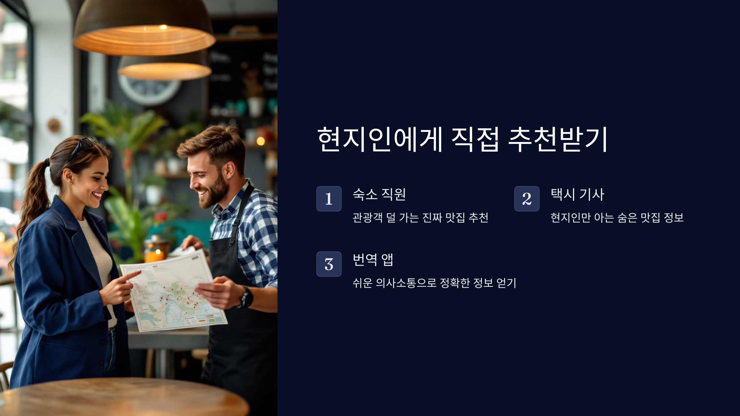 이제 맛집을 찾았으니, 현지인에게 직접 추천을 받는 방법도 알아볼까요? 😊🍜