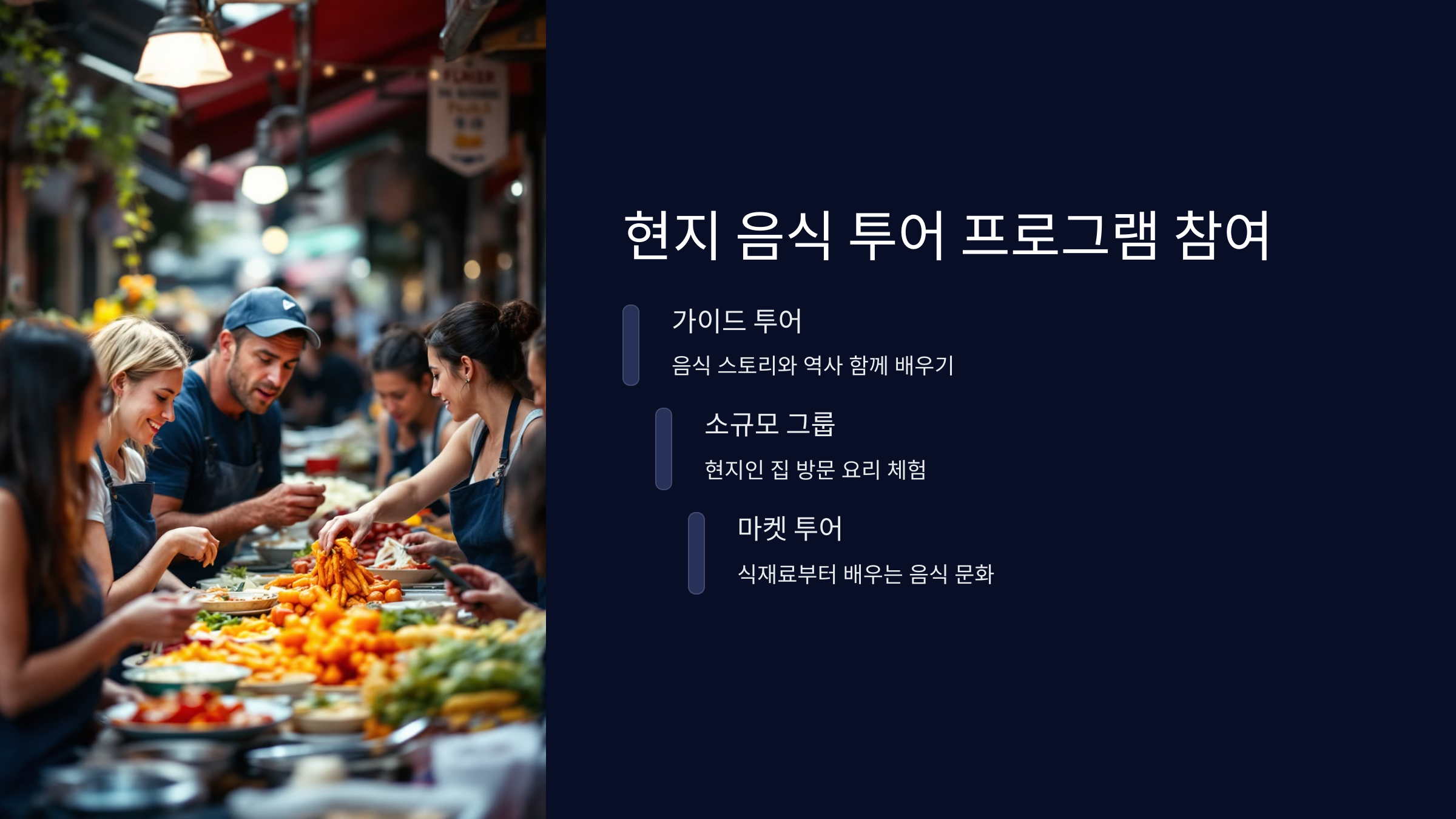 이제 다음으로, **현지 음식 투어 프로그램**을 활용하는 방법을 알아볼까요? 😊🍷