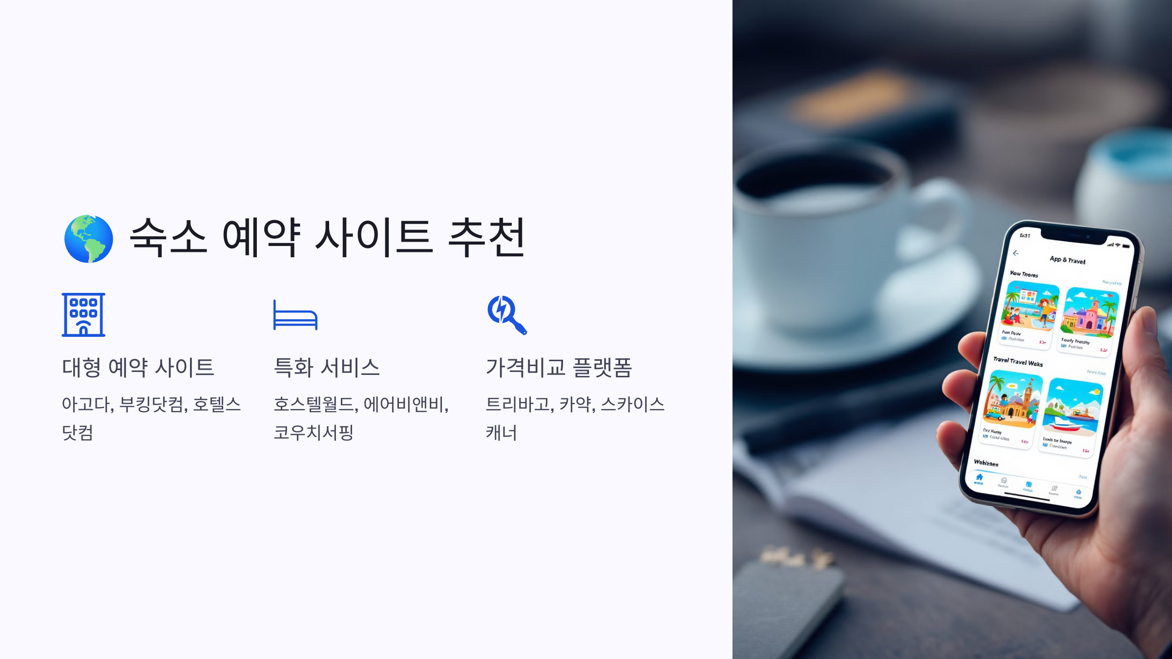 | Agoda | 아시아 지역 숙소 강세, 할인 쿠폰 많음 | 아시아 여행 |
