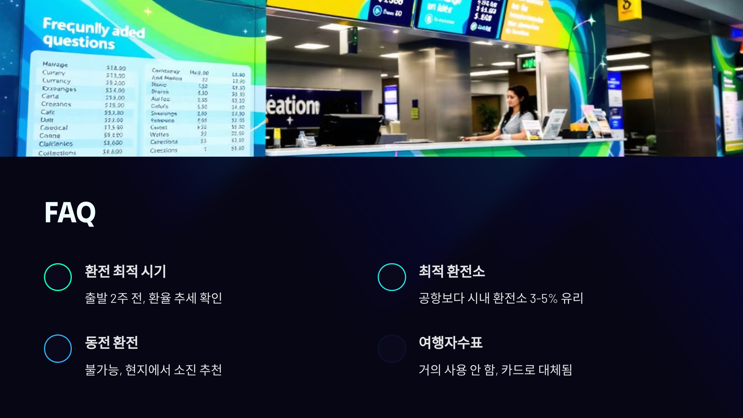 - 🛂 **출국 당일 공항에서 급하게 환전하면 우대받기 어려움**
