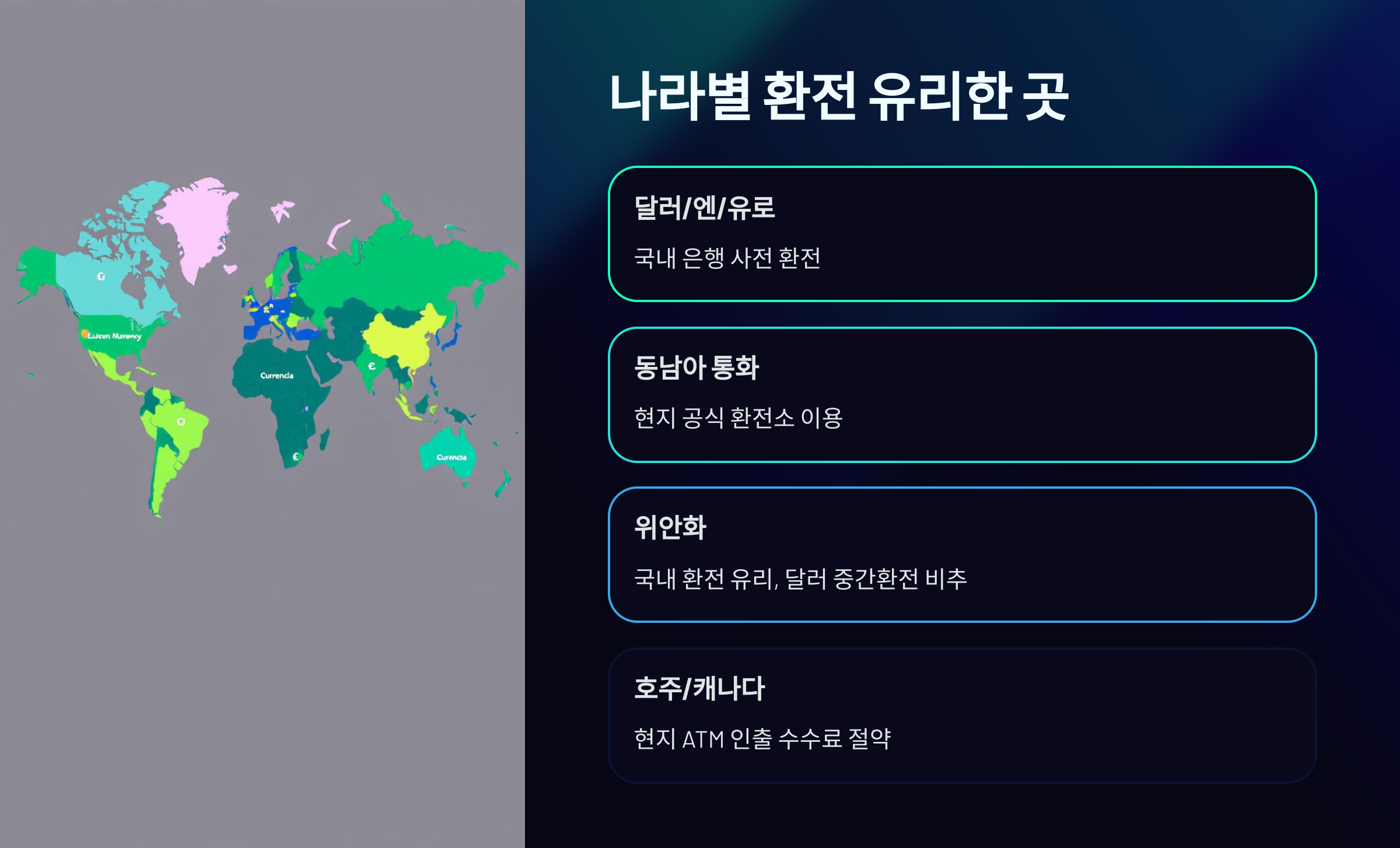 - 💸 **현금 환전이 불리한 국가 (미국, 캐나다, 유럽 등)**