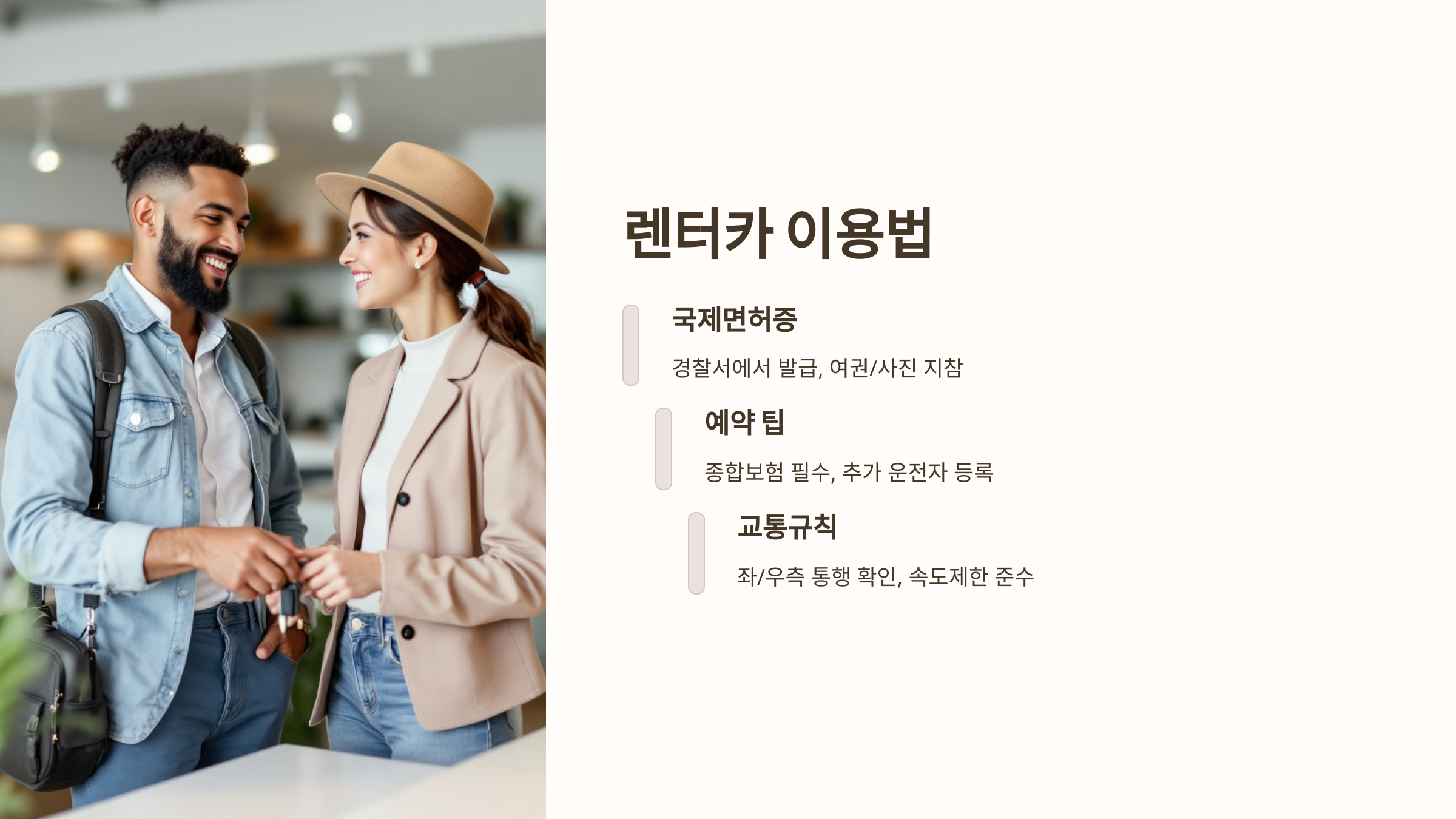 이제 택시와 차량 호출 서비스에 대해 알아봤으니, 다음으로 **렌터카 이용법**을 살펴볼까요? 🚗✨