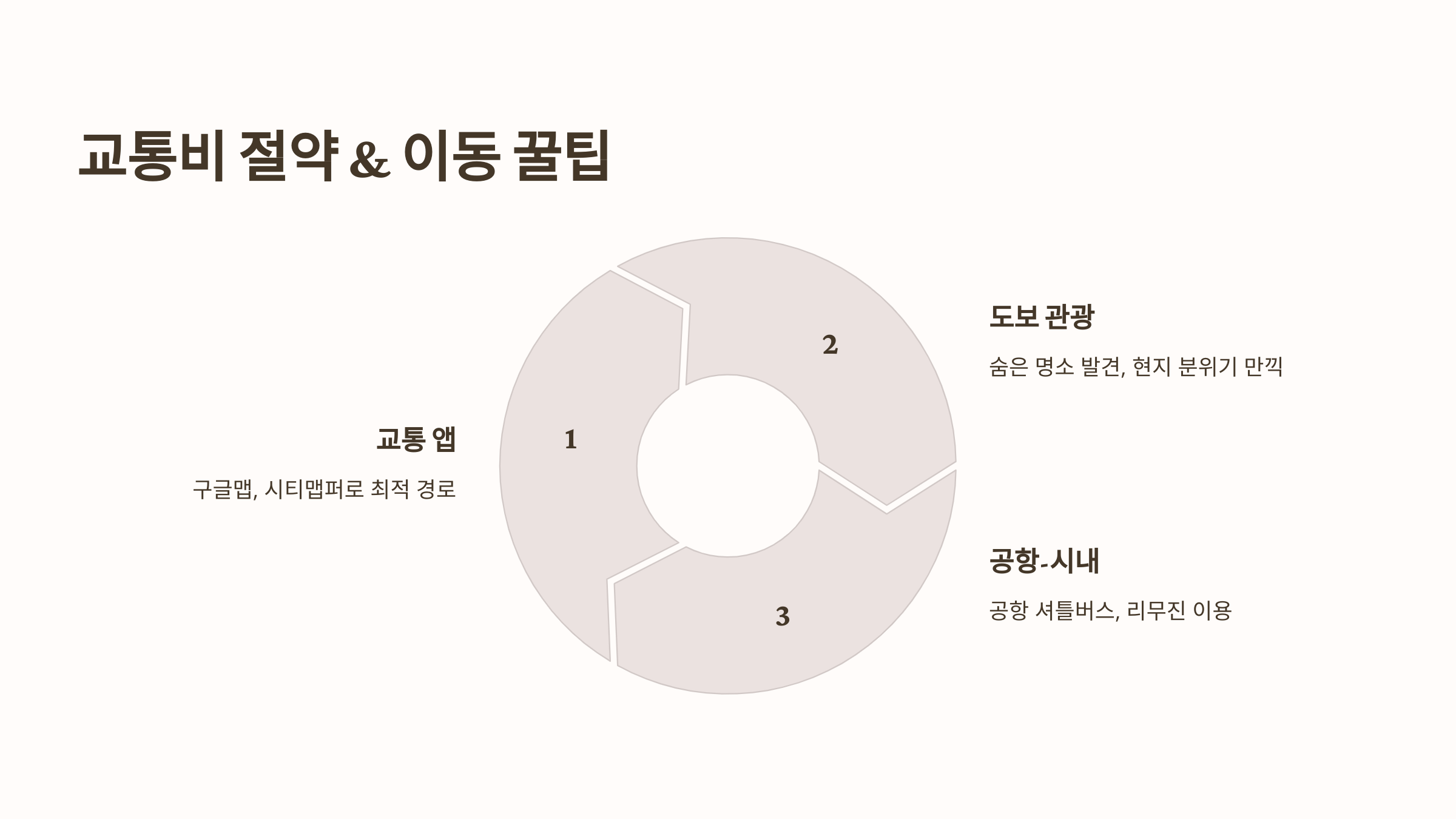 이 팁들만 잘 활용해도 **불필요한 교통비 지출을 줄이고, 알뜰한 여행이 가능**해요! 😊✨