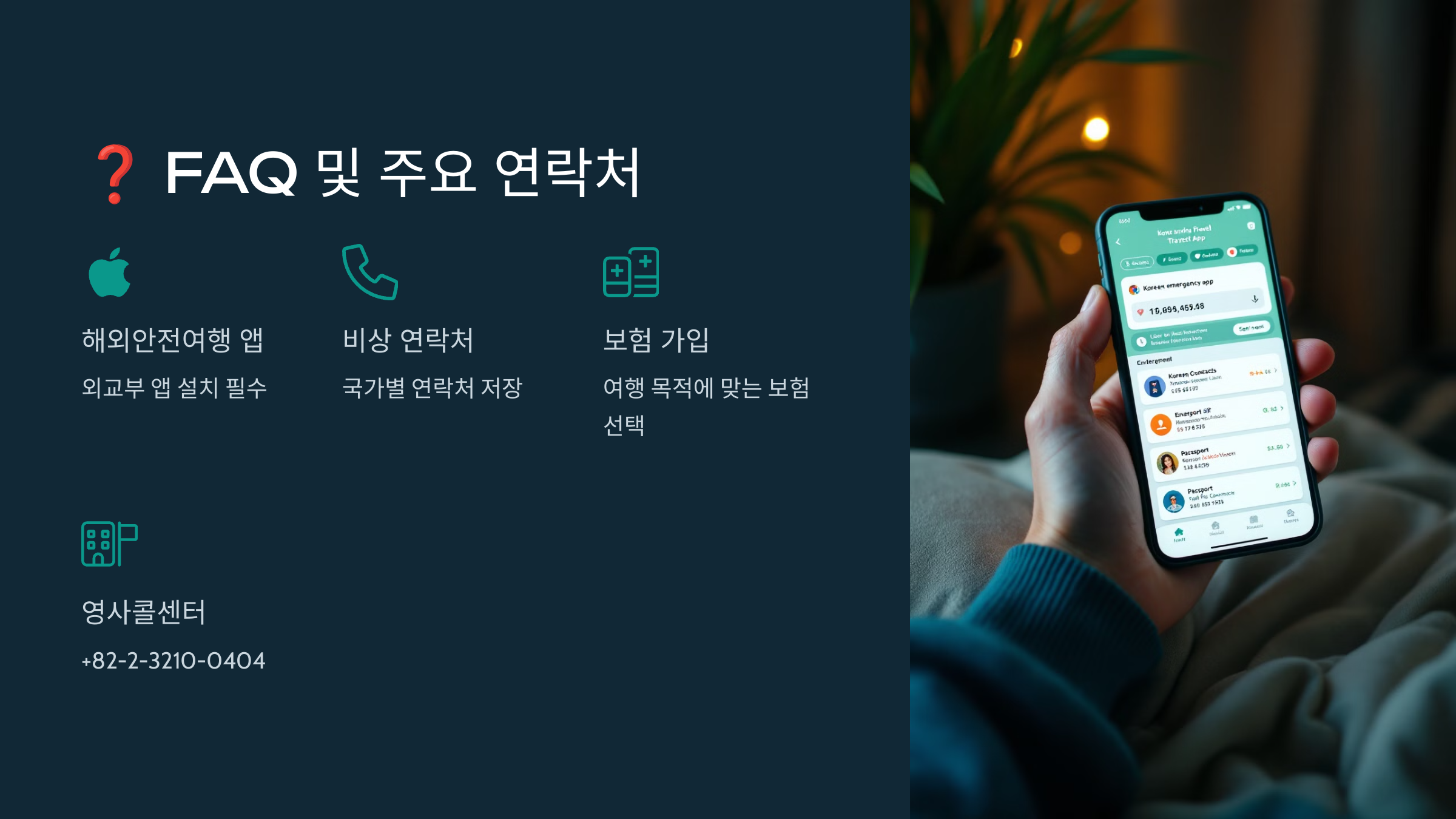 이제 해외여행 중 비상 상황에 대한 궁금증을 해결할 FAQ를 확인해 볼까요? ❓