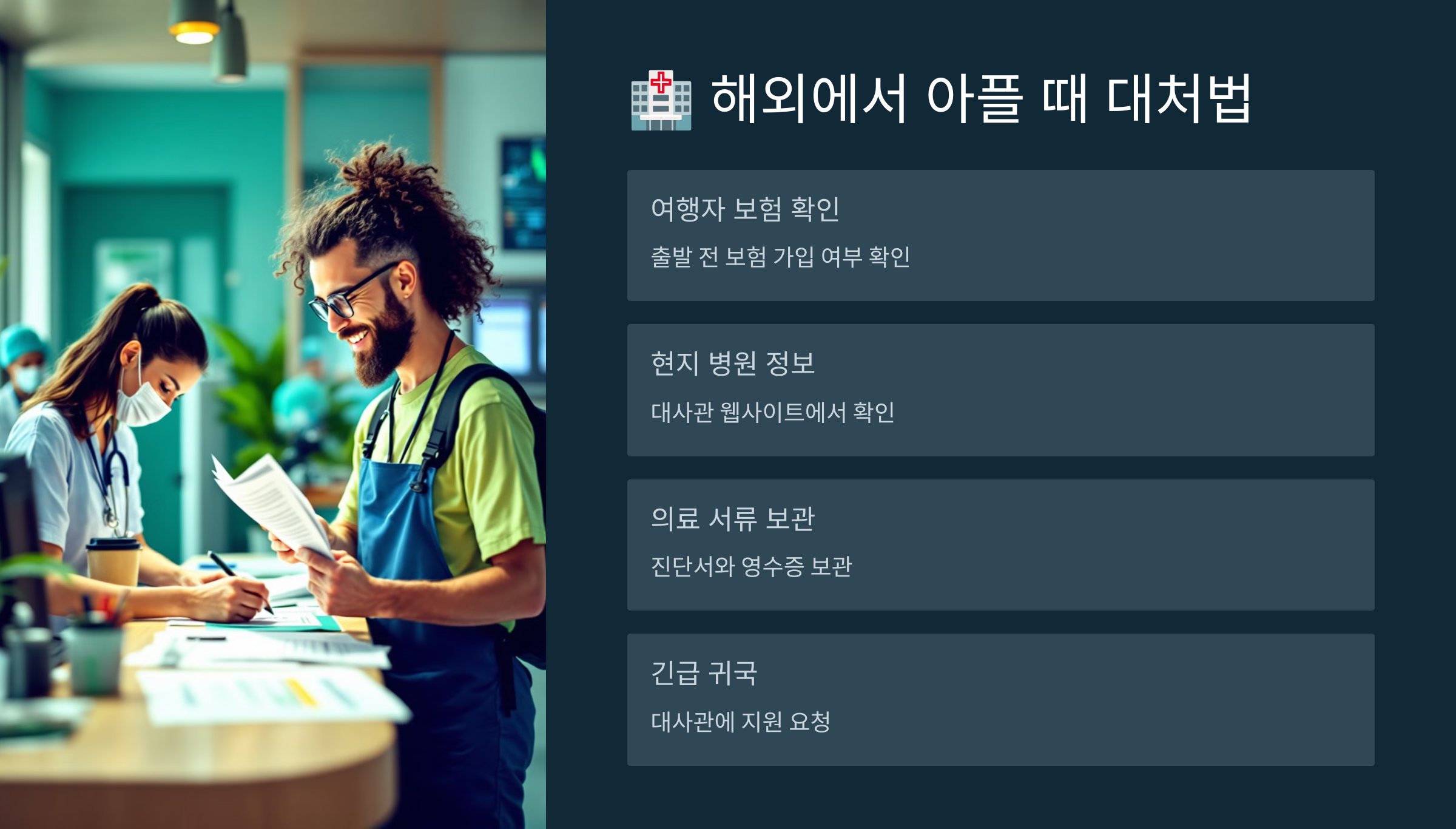 이제 해외에서 아플 때 어떻게 대처해야 하는지 알아볼까요? 🏥