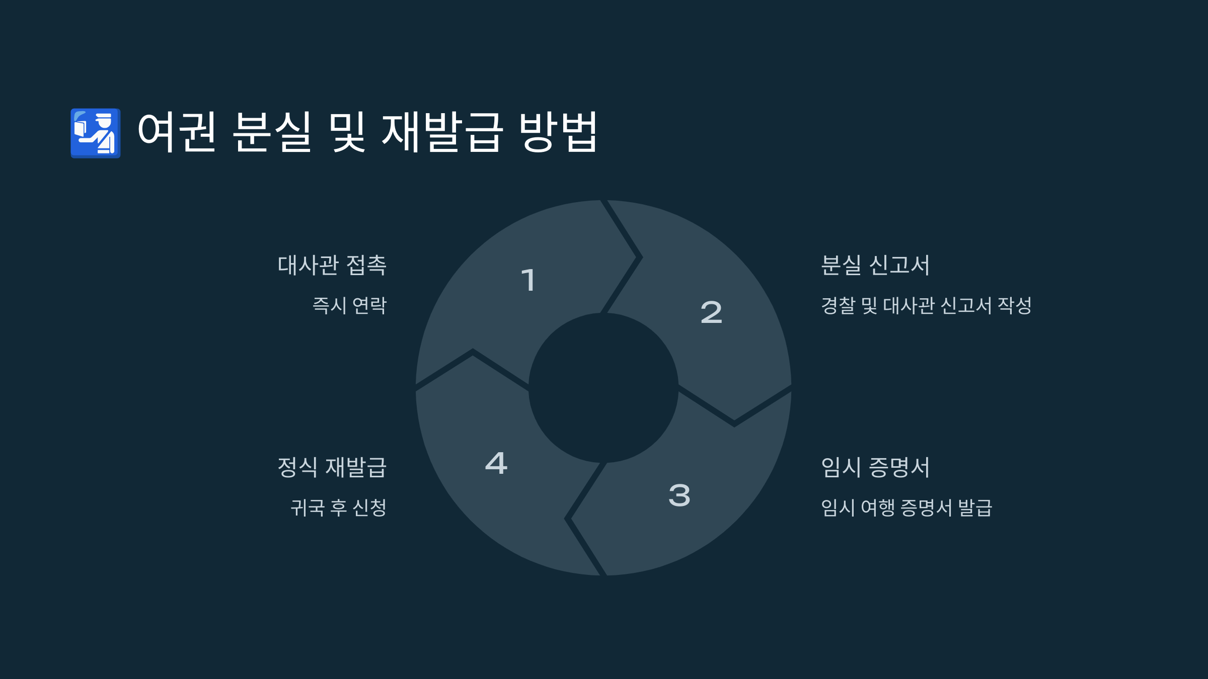 | 4. 새 여권 수령 | 대사관에서 임시 여권 수령 후 출국 |