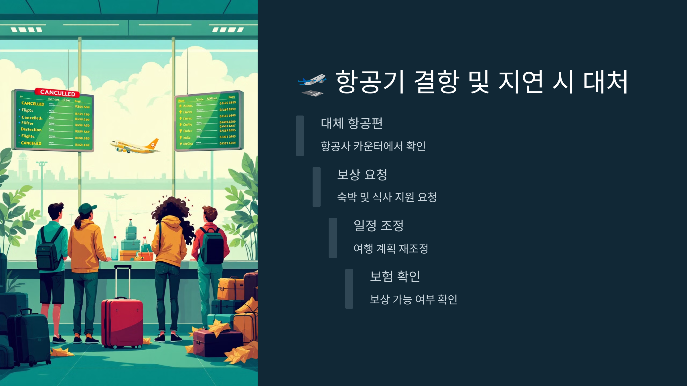 이제 항공기 결항 및 지연 시 어떻게 대처해야 하는지 알아볼까요? 🛫
