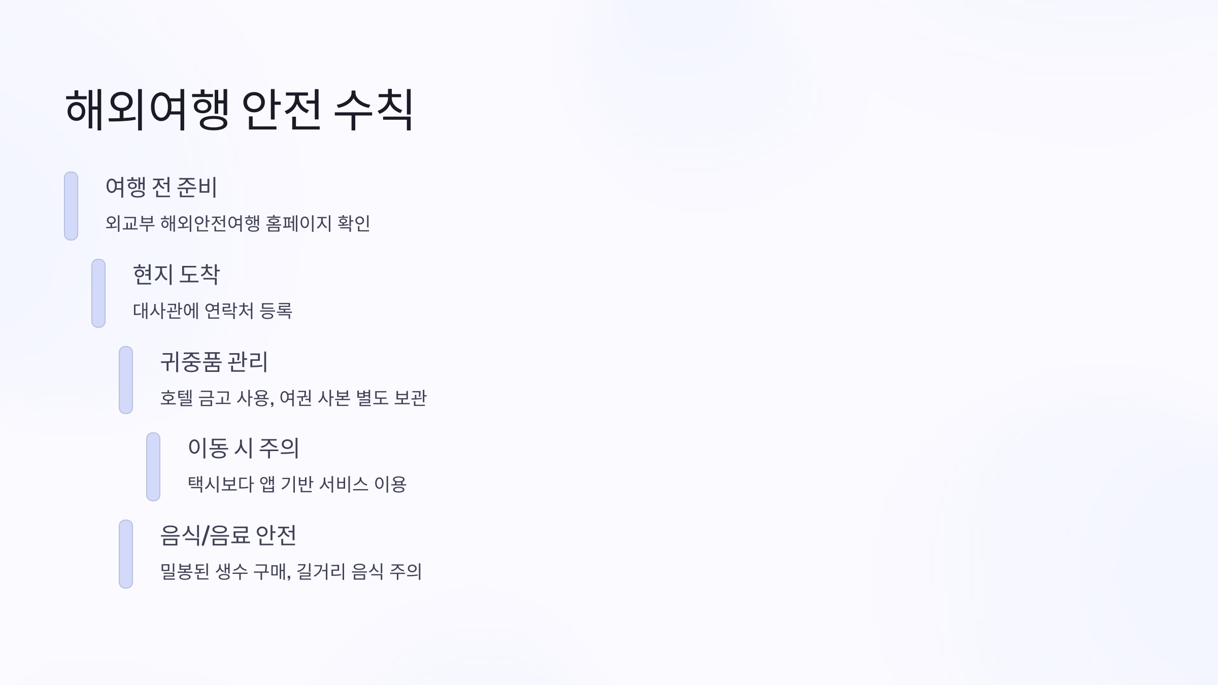그럼, 해외여행을 안전하게 즐기기 위한 필수 수칙을 정리해볼까요? 🔍