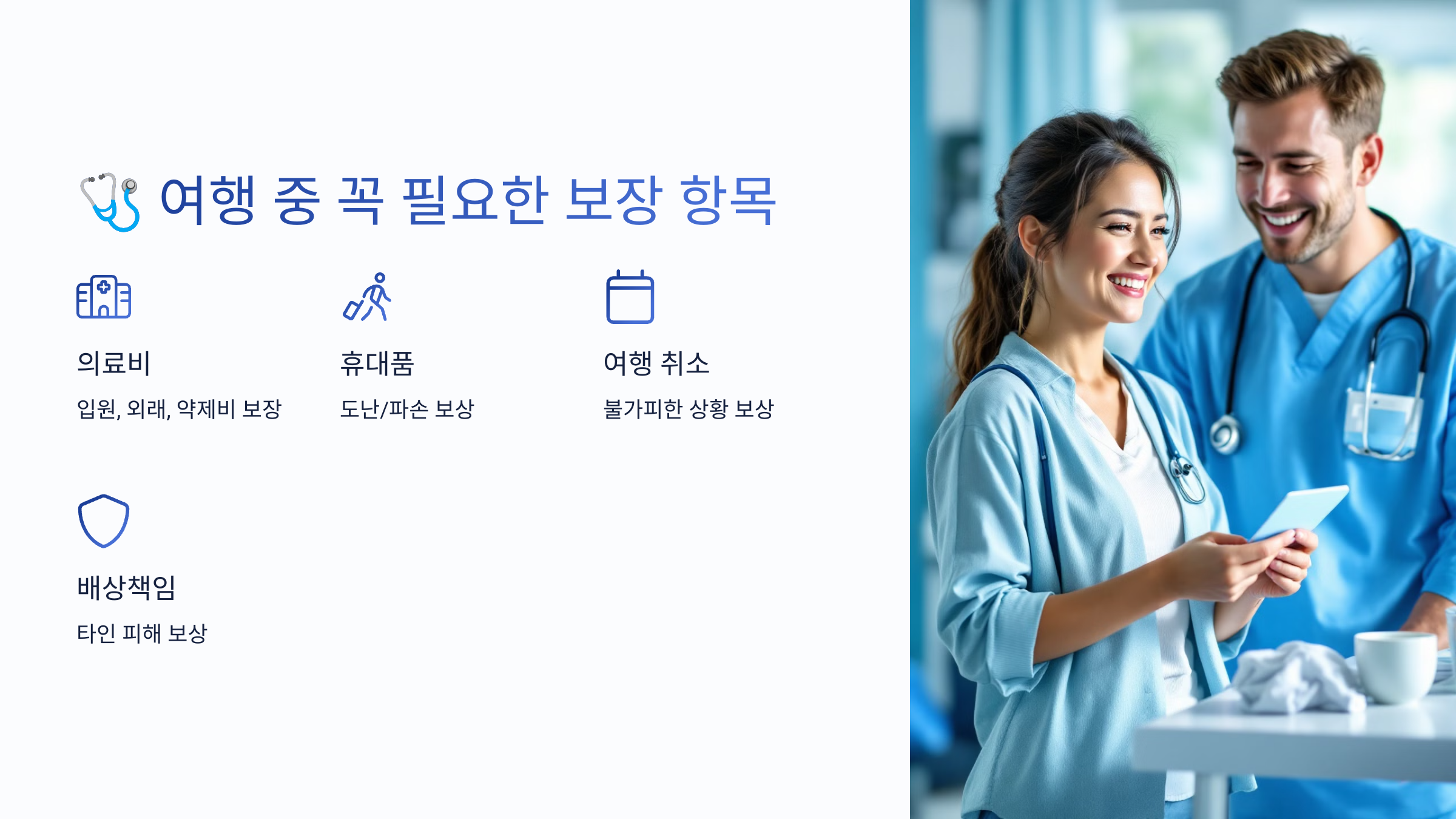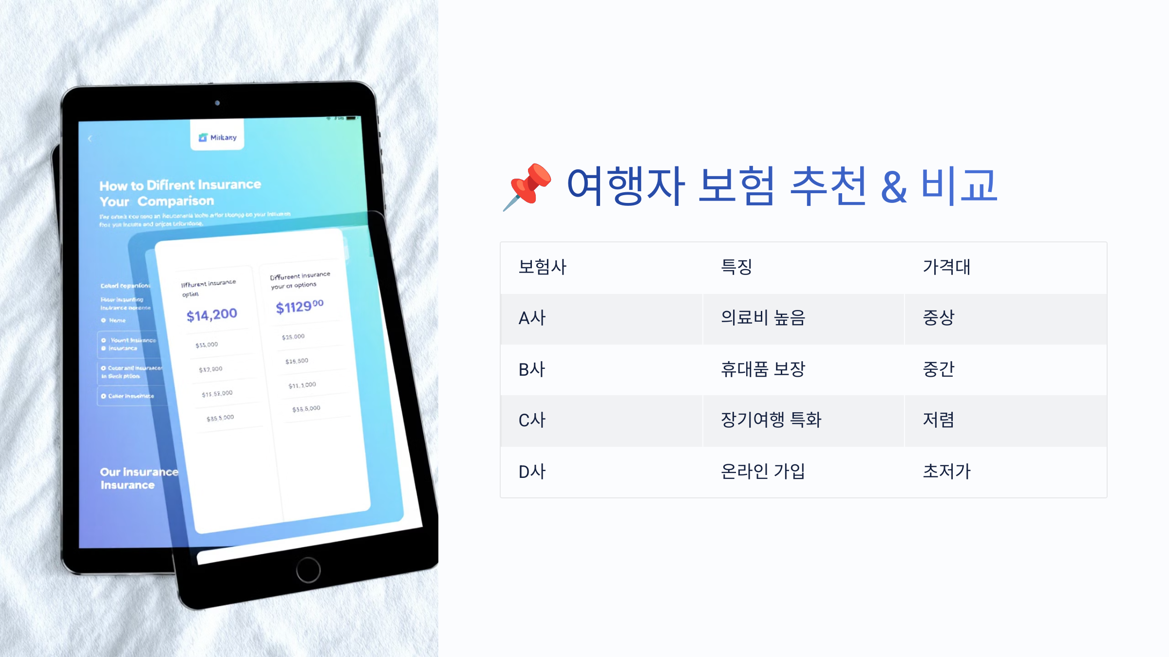 보험사마다 보장 내용이 다르기 때문에, 내 여행 스타일과 목적지에 맞는 보험을 선택하는 것이 중요해요! 😊