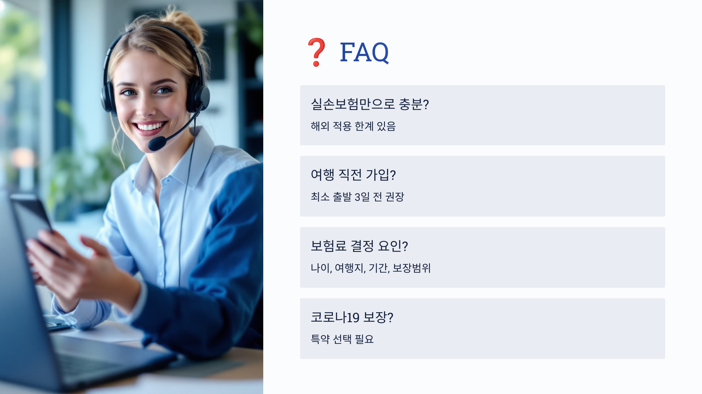 이제 여행자 보험에 대한 궁금증을 해결해 줄 FAQ를 확인해 볼까요? ❓
