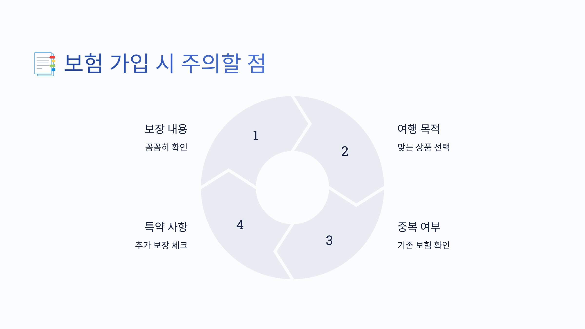 이제 여행자 보험 가입 시 주의할 점을 알아볼까요? 📑